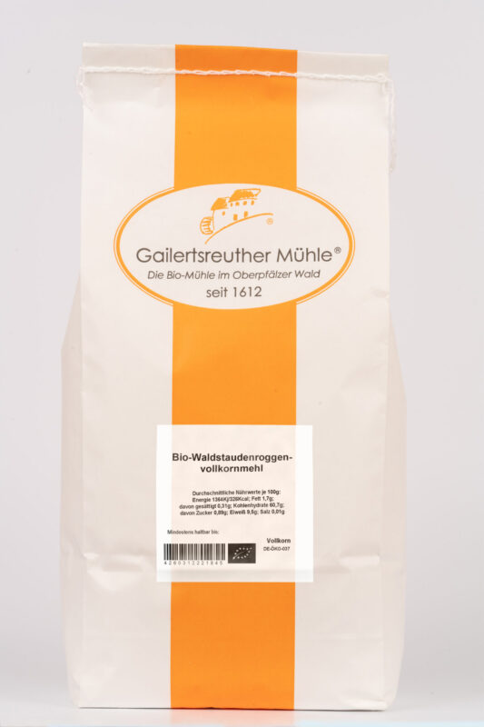 Bio Waldstaudenroggenvollkornmehl mittel aus regionalem Anbau.